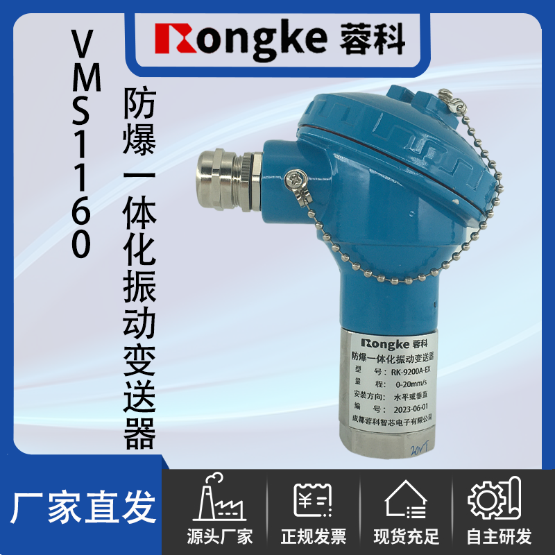 防爆一体化振动变送器:将磁电式振动传感器、精密测量电路集成在一起,构成高精度振动测量系统,该变送器可直接连接DCS、PLC或其它设备,是测量风机、电动机、水泵等工厂设备振动的理想选择。