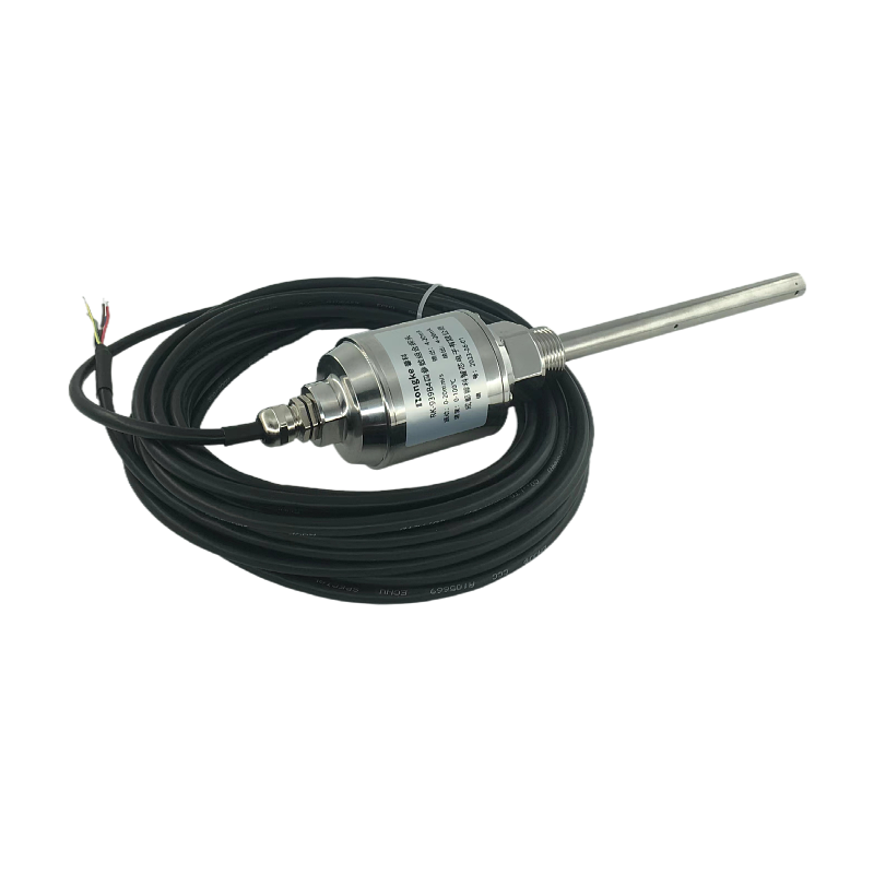 探头为不锈钢全封闭防水结构,重量约0.8kg ,探头是以外螺纹形式,安装于风机减速箱的螺纹安装孔中,温度探杆插入减速箱内。螺纹规格和探杆插深可在定货时申明。