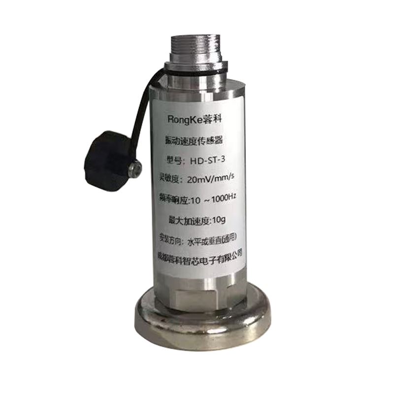 HD-ST-3振动速度传感器 主要用途:振动速度传感器主要安装于风机、水泵、电机等旋转机械的轴承座瓦上,用来监控被测设备的轴承运行情况,在轴承不良的前期能准确的提前预判,可避免设备的进一步损坏。也可用于各种机床、数控中心的工装夹具、振动筛、送料机皮带运行稳定状态、破碎机状态监控等系列设备。它可用于测量轴承座、机壳或结构的振动(相对于惯性空间的绝对振动)。它直接安装在机器外部,使用维护方便。