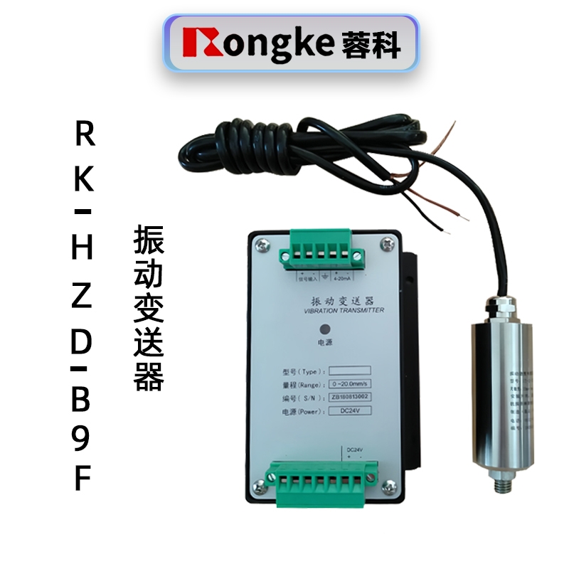 振动变送器RK-HZD-B9F一体化振动速度(位移)变送器是将振动速度传感器、精密测量电路以及显示电路集成在一起,实现了传统的“传感器十变送模块“结合的振动测量系统的功能,适合于构建经济型高振动测量系统,该变送器可直接连接DCS、PLC或其它系